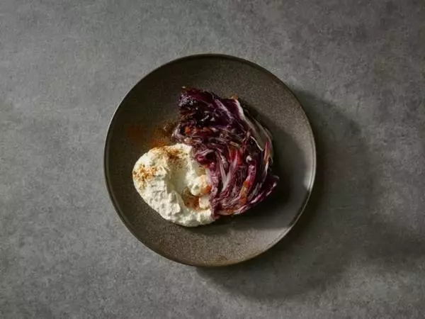 白インゲンのペーストをつけて食べる『軽く焼いたトレビス ホワイトキドニーピュレ』