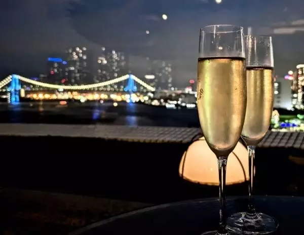 オープンは17:30~。シャンパンを片手に、夕方から夜にかけて移り変わる景色を楽しむのも最高なひと時に