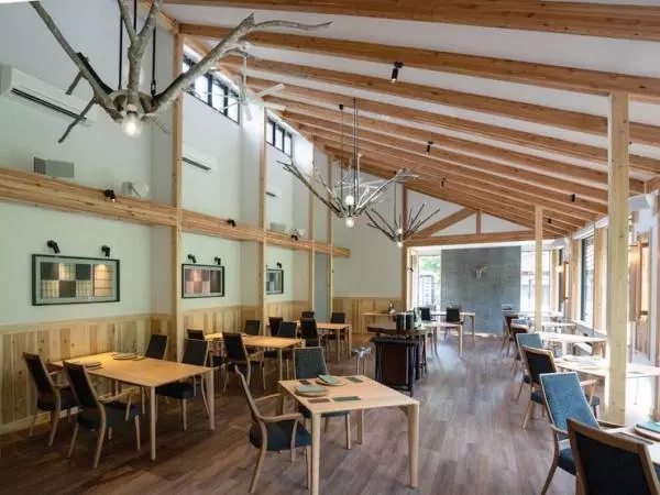 お店は四季折々の風景を楽しめる高台に位置しています。明るく開放的な店内は、木のぬくもりが感じられるリラックス空間。食材のみならず、ワインや食器、家具に至るまで信州産で統一されています。国内外から注目される長野ワインも常時40種類以上そろい、シェフこだわりの“信州フレンチ”とのペアリングが楽しめます。