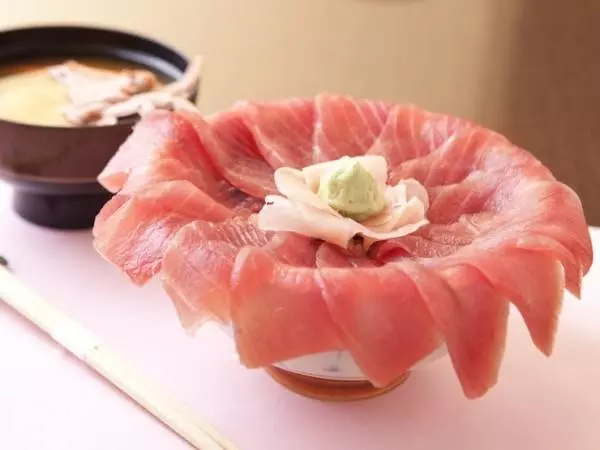 器からあふれんばかりに鮪がのった『はみ出し丼』