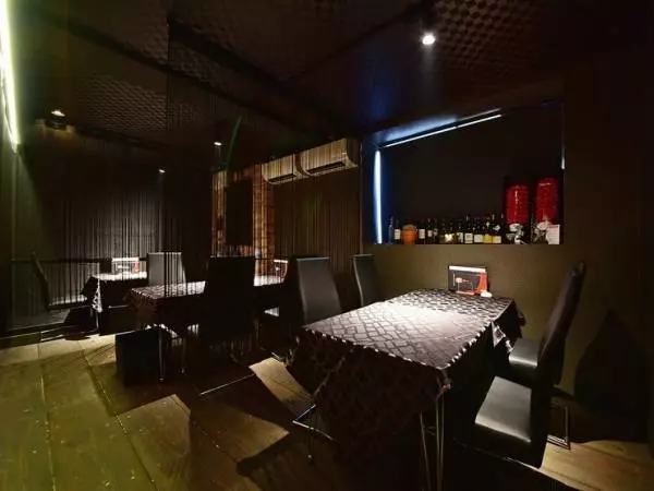 大分駅より徒歩10分、都町にあるレストランです。深みのある黒を基調としたシックで落ち着いた空間は、照明が落とされムーディーな雰囲気を演出。テーブル席はストリングカーテンで仕切られており、プライベート感たっぷりです。