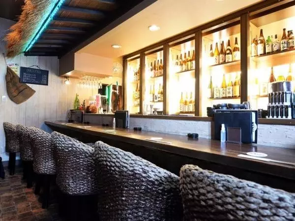 郡山の繁華街、朝日二番街にある多国籍料理が味わえるバー。バリのリゾートにいるような屋根付きのカウンター席には、お酒のボトルが並びます。照明にこだわった店内は、まるで海外リゾートにいるかのよう。