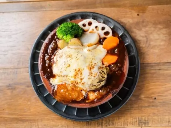 『熟成ハンバーグが主役の焼きロールキャベツグラタン』自慢の熟成ハンバーグの旨味をキャベツで閉じ込めた肉汁が溢れ出るロールキャベツを、自家製ドミグラスソースにチーズをたっぷりかけてオーブンで焼き上げた逸品です
