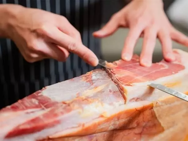 『ハモンイベリコ』濃厚で口の中でとろける脂身とまろやかな塩味が特徴のイタリア産ハモンイベリコ。イベリコ豚の原木から、オーダーを受けてからスライスしていただけます