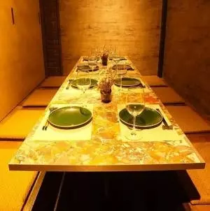 料理とお酒のペアリングの妙にひたれる、ワインや日本酒も充実しています。木や石のオブジェが醸し出す風雅な雰囲気も魅力で、自然と心が落ち着いてくる趣。ゆったり憩いたいとき、大切な人を誘って出かけたい一軒です。