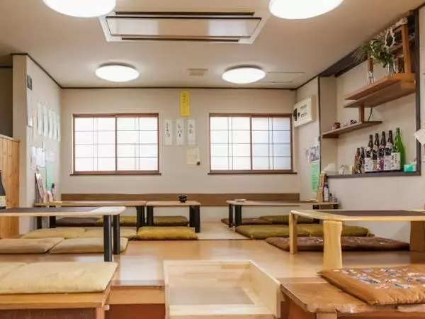 直江津駅より徒歩10分のビジネスホテル【ホテルアルファーワン】に隣接する、新潟にいながら北海道の定番料理が味わえる居酒屋。明るい店内にはテーブル席が4つあり、奥には大人数で使える個室もあります。靴を脱いでゆったりとくつろげる座敷スタイルで、我が家のような居心地のよさを感じられます。