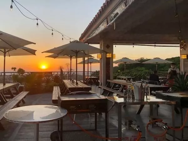 北中城村にある複合施設2Fにある【レインボーテラス沖縄】は、開放的なテラスが自慢のお店。夕暮れから夜にかけての時間は、沖縄の魅力を全身で感じる絶景に酔いしれることができます。開放感あふれるテラスでのBBQのほか、ランチタイムにはサラダやデザートなどがついたお得なセットも。『レインボーテラスのナシゴレン』や『北中城産アーサのクリームパスタ』もオススメです。