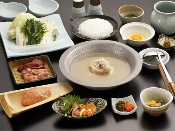 博多の地で鶏肉の卸をしていた創業者が自ら養鶏に携わったブランド鶏「華味鳥」。開放鶏舎で専用飼料を食べて健康的に育てられています。じっくり炊き出した濃厚な鶏ガラスープは具材を煮込むほどに旨みが溶け出し、より滋味深い味わいへと変化。創業者こだわりのオリジナルぽん酢でいただきます。
