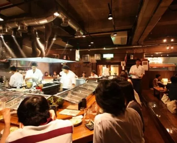 天神駅より徒歩7分の、新鮮な食材を使った「博多焼とり」が名物の居酒屋。中央のカウンター席は、ずらりと並んだショーケースが雰囲気たっぷり。大きな炉があり、職人の仕事ぶりを見ながら食事が楽しめます。小上がりは掘りごたつの座敷になっていてゆったりと過ごせます。