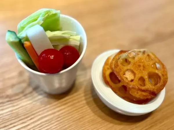 蓮根チップとフレッシュな生野菜