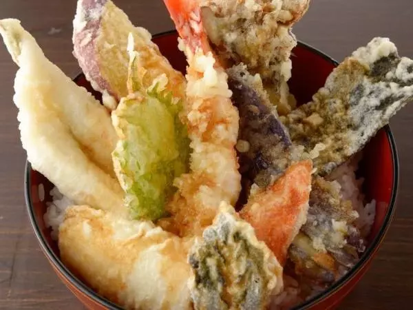 10品の揚げたて天ぷらをのせた看板メニュー『天丼』