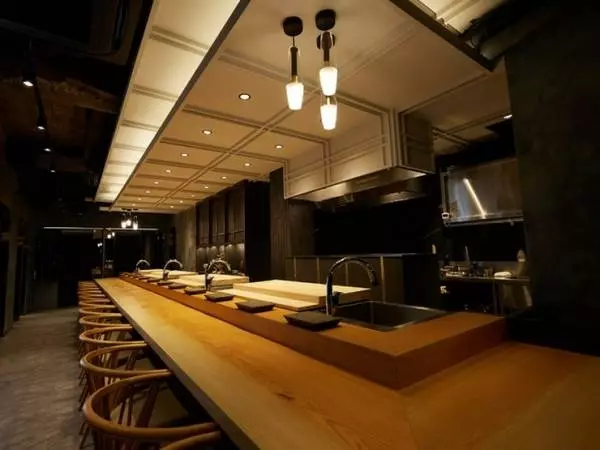 大きな窓が配された開放感あふれる1Fには、すっきりとしたカウンター席を配置。プライベートな時間を演出してくれる個室もあり、木のぬくもりを感じながら落ち着いて食事を楽しむことができます。