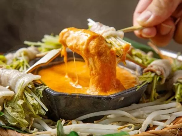 ブランド豚の旨みを味わう『霧島山麓豚のスチームフォンデュ~韓国風ピリ辛チーズソース~』