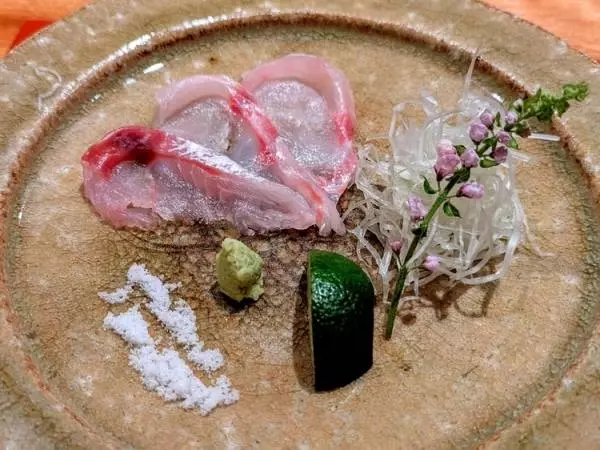『柊』コースで楽しむことのできるお造りは、肉厚濃厚なのどぐろの身が口の中でとろけるおいしさ。醤油の他にのどぐろと同じ対馬産の塩でシンプルに味わうのもおすすめです