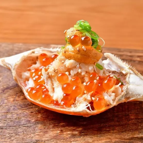 一番人気のメニュー『蟹ユッケ甲羅寿司』