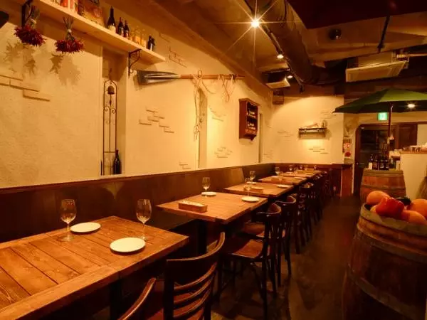 お店があるのはビルのB1F。地下へ降りる階段の手前には、オススメのメニューが記された黒板が設置されているので、チェックしてからお店へ向かいましょう。店内はアットホームな空間になっていて、ゆったりくつろげそう。家族連れも気兼ねなく過ごせる雰囲気です。カウンター席もあり、ワインを傾けつつ語らうデートにもオススメです。