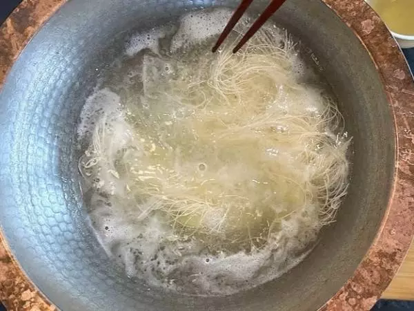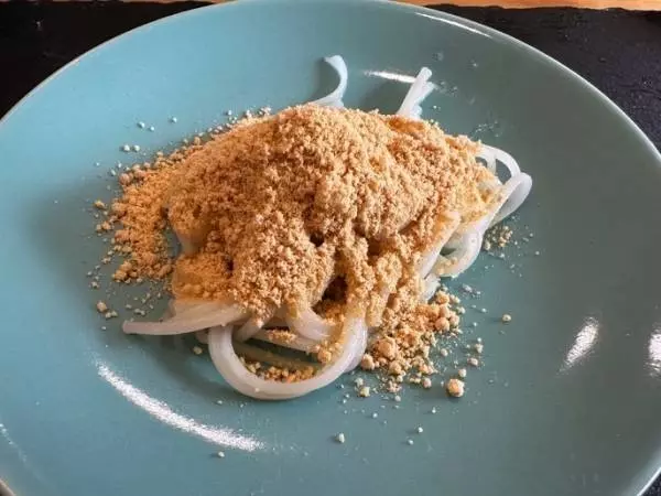 デザートもそうめんでした。そうめんを切るときに出る残りをバチといって、それをきなこと混ぜて甘味にしたのだとか。