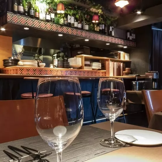 三宮駅徒歩5分の好立地に佇むビストロ。店内をリニューアルし、テーブル席は以前よりもゆったりと落ち着きある空間になっています。シェフの臨場感あふれる調理風景を眺められるカウンター席と壁一面ソファーシートのテーブル席を用意。パーテーションがあるので、半個室感覚で使えます。