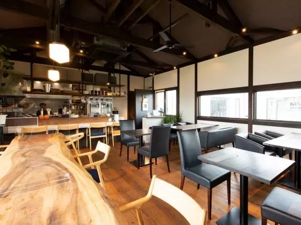 ナチュラルテイストでまとめられた店内は、スタイリッシュでありながら、アットホームでくつろげる雰囲気。一枚板のテーブルや、オシャレなデザイナーズチェアが目を引きます。オープンキッチンに面したカウンター席は、調理風景が眺められる特等席。香川で人気のフォトスポット「高屋神社」から車で20分ほどなので、観光帰りに立ち寄ってみては。
