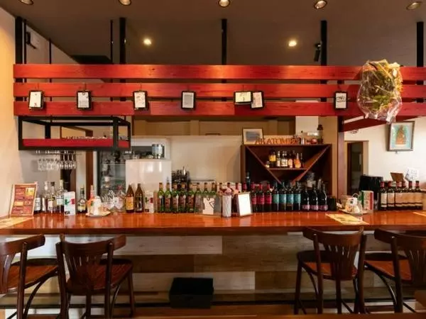 県道44号線に出ている看板を目印に駐車場へ入ると、赤と黒のツートンカラーが目を引く建物が登場。店内は木の温もりと、植物の癒やしに満ちた穏やかな空間が広がっています。家族や友人との普段の食事やデート、記念日のお祝いなど、さまざまなシーンで幅広く利用できる一軒です。