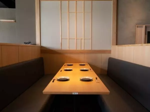 船橋駅から徒歩8分、本町通り沿いにある雑居ビルの2階にあるネオ和食居酒屋。オシャレで独創的な雰囲気の店内で、ゆったりと落ち着いて食事や会話が楽しめます。テーブル席やカウンター席に加えて、ボックスタイプのソファ席も用意。隣の席が気にならないスペースがうれしい。