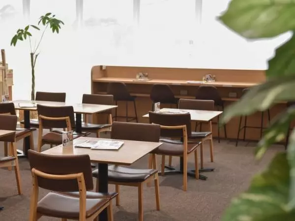 お店があるのは、熱気球について学べる「佐賀バルーンミュージアム」の2F。陽の光が差し込む店内は、明るくて落ち着いた雰囲気です。カウンター席は一人でも気軽に利用でき、ゆっくりくつろぐことができます。店内にはキッズスペースがあり、子ども連れで来店しやすいのもうれしいところ。駐車場も完備されているので、ドライブ旅行で立ち寄るのにも便利です。