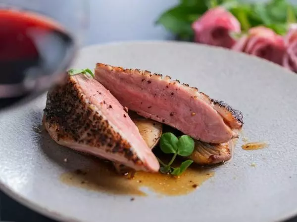 素材ごとに適した調理時間を見極めてつくる『本日のお肉料理』(写真は「鴨のロースト」)