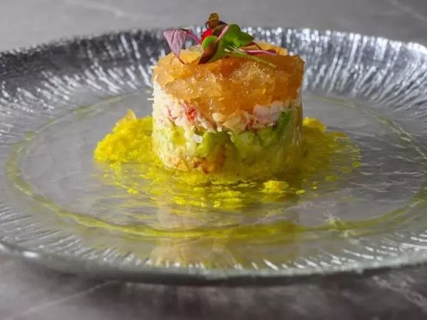『毛蟹のタルタル、トマトジュレ、茄子、アボカドの四重奏』2,800円