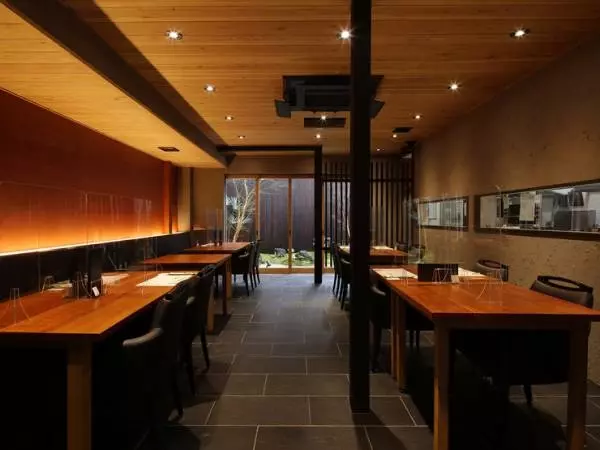 奥行のある店内に坪庭、モダンに洗練されながらも京都らしさが漂う店内