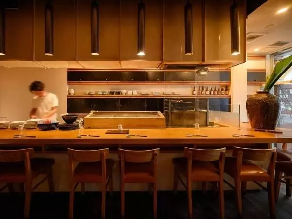 ペアリングにふさわしいお酒は、日本酒や焼酎はもちろん、ワインも充実しています。店内は木の温もりが漂う落ち着きのある空間です。臨場感高まるオープンキッチンを備えた1Fのカウンター席、グループで過ごしやすい小上がりが設えられた2F席の2つのフロア。