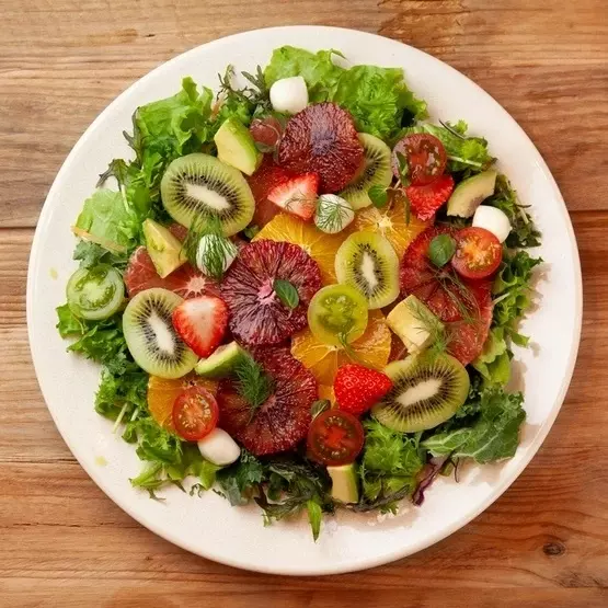 『旬のフルーツとアボカドとモッツァレラチーズの彩りサラダ』