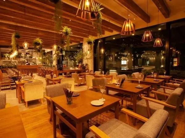 天然木素材を多用した店内は、たくさんのフレッシュグリーンに彩られたナチュラル空間。人気は『骨付きチキン付!やさいの王様スープカレー』や『たっぷり彩野菜のファーマーズサラダピザ』など。ランチタイムの食事には平日・週末ともに無料のドリンクバーがついています。月替わりのクラフトビールややさいのお酒など、ドリンクメニューも充実しています。