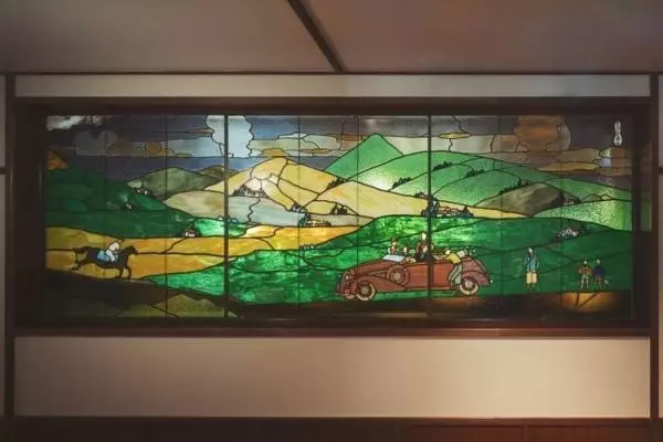 メインダイニングを彩るステンドグラスは宇野澤秀夫氏の作品