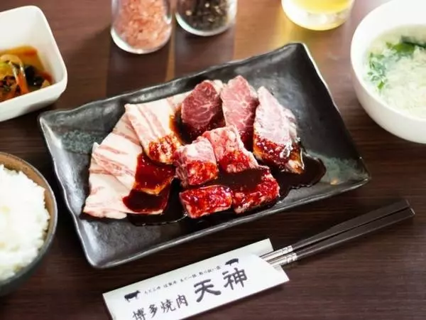 絶妙な甘さと柔らかい食感が特徴の「もとぶ牛」と、奥行きある味わいの「佐賀牛」を厳選して仕入れ。ランチメニューは、焼肉とライス、小鉢、スープ、ソフトドリンクがセットに。お肉はさまざまな部位から選べます。沖縄ならではの『ブルーシールアイスクリーム』や「和牛焼肉弁当」も販売。