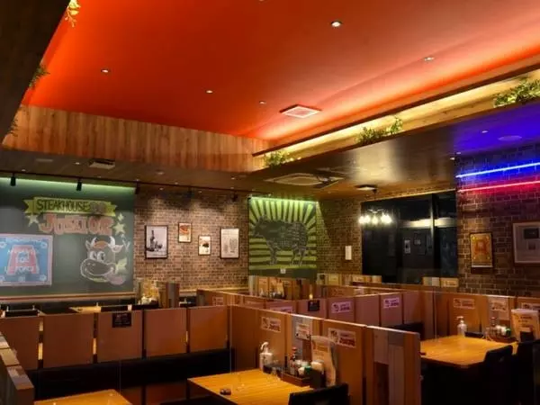 看板メニューの『Jr.ステーキ』をはじめ、リーズナブルでおいしいステーキはすべて、スープ、サラダ、ライスの食べ放題がセットになっていて食いしん坊も大満足! ハンバーグやエビフライとのコンボやオリジナルにんにく醤油の鉄板焼肉など、メニュー展開が豊富なのもうれしい。