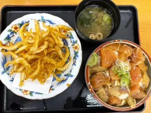 新湊には【きときと食堂】といって観光客に人気のお店で安価でいろんなメニューを楽しめる食堂があるんですが、私はここではじめて『かけ中』というものを知りました。かけなか、ではなく「かけちゅー」と読みます。この料理わかります?