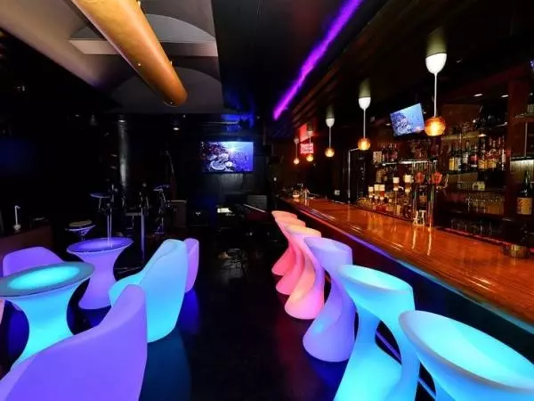 LED家具に囲まれた異空間で音楽とお酒を楽しむ