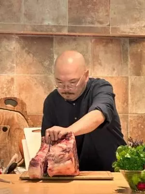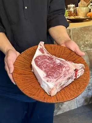 シェフが肉を切り始めました。そして見せてくれます。立派で綺麗な牛肉です。