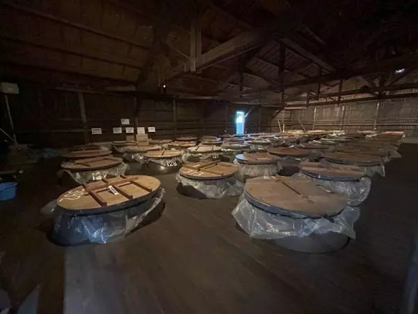 「伝兵衛蔵」では、杜氏たちが手作業で一本一本丹精込めて焼酎づくりを行っており、昔ながらのかめ仕込みやかめ貯蔵の様子を見ることができます。この日もちょうど蔵人が焼酎づくりを行っているところを見ることができました。