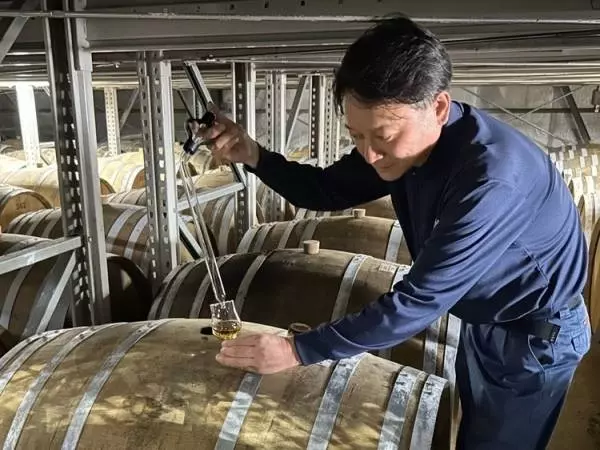 歴代のブレンダーたちが引き継いできた個性豊かな原酒たち。定期的にガラスのスポイトで中の原酒を取り出し、色合いと味わいを確認します