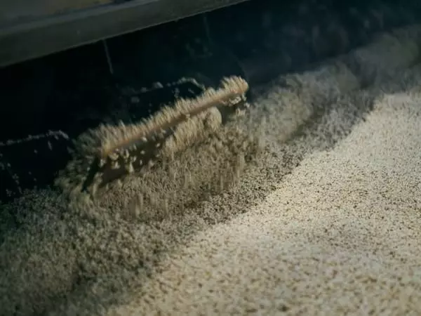 焼酎の原料となる米や麦などの穀類原料を受け入れます。2_吸水・水切り・蒸し・冷却・種付け