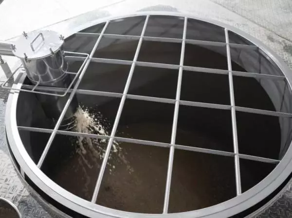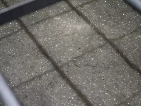 水と酵母を入れたタンクに麹を加えて約6日間発酵させ、もろみをつくります。この段階では、次の二次発酵で十分なアルコール発酵が行えるように、酵母を増やしていきます。