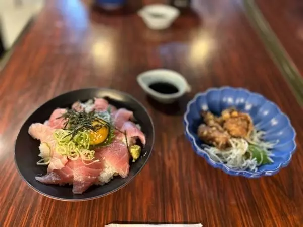 マグロのハラモ丼に、マグロカツ、ご飯、味噌汁などがついた季節限定『鮪三昧御膳』1,380円