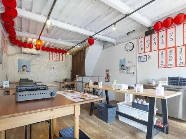 用意されているだしにつけて、明石焼きスタイルで食すのもオススメです。たこ焼き店で修業を積んだ店主の北村さんが焼くテイクアウトのたこ焼きも好評で、20個、30個と大量購入するゲストも多数。店内はカフェのような空間で、家族連れやデートに最適です。