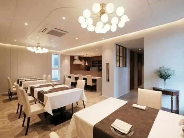 白を基調とし、落ち着いた雰囲気の店内はエレガントな空間で、日常を忘れて食事を楽しめます。食器類も有田焼やノリタケなどの選び抜いた物を用意。かしこまったサービスではなく、丁寧なサービスを心がけている同店。何かあれば気軽に相談を。