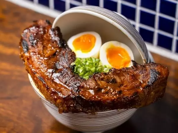 300gの角煮を豪快に味わえる『スマイル味噌角煮丼』