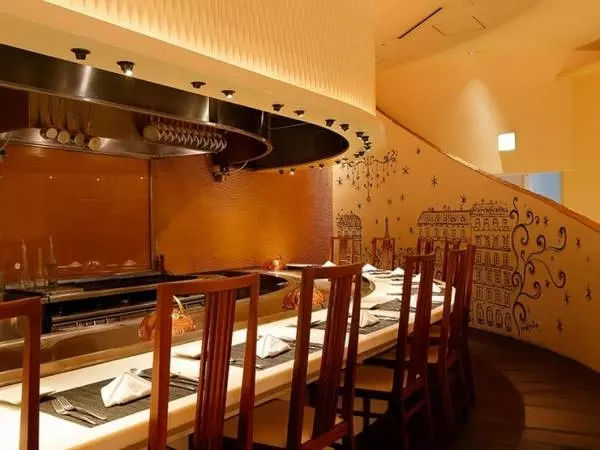 カウンター席では五感をフルに使って鉄板フレンチが楽しめる