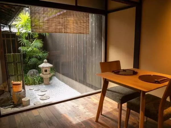 坪庭を眺めながらくつろげるテーブル席はデートにもオススメ