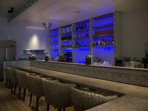 夜のカウンター席は、7色に変化するバックバーが幻想的な雰囲気