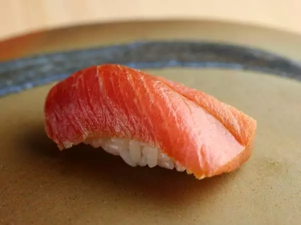 小粋な白暖簾が目印の【鮨誠】。国内外でグルメ人の舌を楽しませてきた店主が腕を振るう。江戸前ならではの赤シャリで鮨を握り、北海道産や三陸宮古産の新鮮な食材を使って目にも美しい一皿に仕立てます。